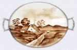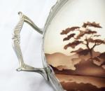 Ovaal dienblad met aardewerk tegel en verschroomde rand