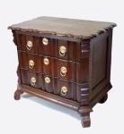 Eiken ladekast met drie orgel gebogen lades en ringbeslag