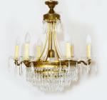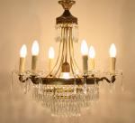 Fraaie antieke kroonluchter met pegels en zes armen