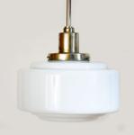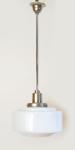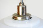 Vintage hanglamp met kap van wit melkglas aan verchroomde stang