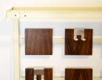 Sixties wandkapstok met metalen frame en houten vierkanten met afneembare haken