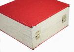 Vintage sixties singles koffer, rood en grijs gekleurd