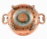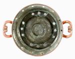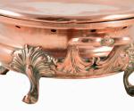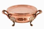 Antieke koperen Franse tafel rechaud met fraai bewerkte handvatten en pootjes