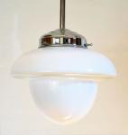 Stijlvolle vintage hanglamp met eikelvormige kap van wit melkglas