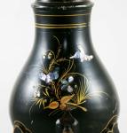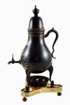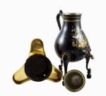 Zwarte kraantjeskan met messing plateau en metalen kooltjeshouder