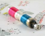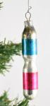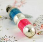 Langwerpige flesvorm, zilver, blauw en roze gekleurd