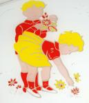 Gedecoreerd met spelende kinderen in de kleuren geel en rood