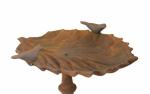 Vogelbad op voet met bladvormig bad en twee vogeltjes