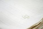 Rechthoekige droogdoek met ingeweven streeppatroon, ophang lus en monogram: EO