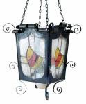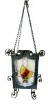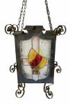 Antieke hal lamp, glas in lood in zwart metalen frame