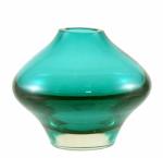 Stijlvolle kleine Scandinavische glazen vaas in groenblauw en helder glas, ontworpen door Erkkitapio Siiroinen voor Riihimaki (ook bekend als Riihimaen Lasi Oy) uit Finland in de jaren '70