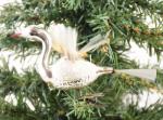 Zilverkleurige zwaan op knijper met vleugels en staart van glaszijde