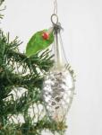 Dennenappel, versierd met leonisch draad, blad en kleine paddenstoel
