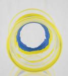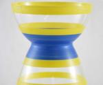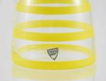 Vintage Orrefors Sweden bollenvaas, geel en blauw gestreept