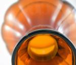 Vintage Leerdam bruine "Garlic" bollenvaas met verticale banen