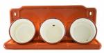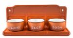 Vintage zand zeep soda rek, smoky oranje emaille, met witte letters