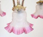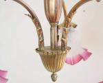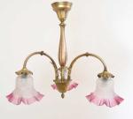 Antieke messing kroonluchter met drie armen en glazen kelkjes