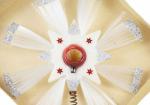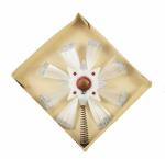 Antieke stervormige piek met stralen van glaszijde, zilverkleurige spikkels en kleine rode deukbal