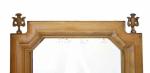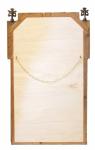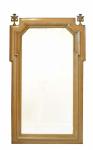 Antieke facet geslepen spiegel met hout imitatie geverfde houten lijst en twee ornamenten