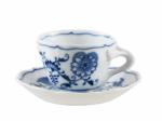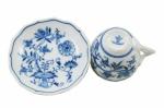 Kleine mokka kop en schotel met blauw zwiebelmuster decor