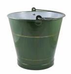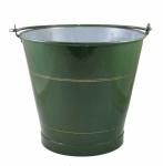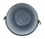 Vintage emmer, donker groen email, met goudkleurige biezen