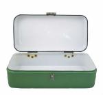 Vintage broodtrommel, reseda groen email, met draaisluiting