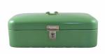 Vintage broodtrommel, reseda groen email, met draaisluiting