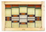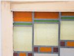 Glas in lood raam, gevat in houten kozijn