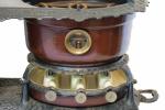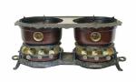 Antiek Original Georg Haller Ottensen Hamburg dubbel petroleumstel, bruin email