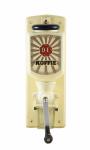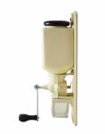 De wandplaat en deksel zijn van hout en de koffiemolen heeft stelschroef voor grove en fijne maling