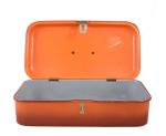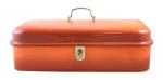 Vintage broodtrommel, smoky oranje email, met draaisluiting