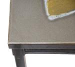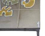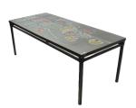 Vintage sixties salontafel ingelegd met tegels met bladmotief en op zwart metalen onderstel