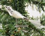 Kleine vogel op knijper met staart van glaszijde