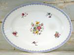Franse ovale dienschaal met blauwe rand en bloemdecoratie