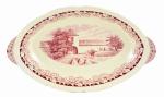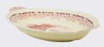 Ovale schaal, decor Boerenhoeve rood, met geschulpte rand en twee handvatten